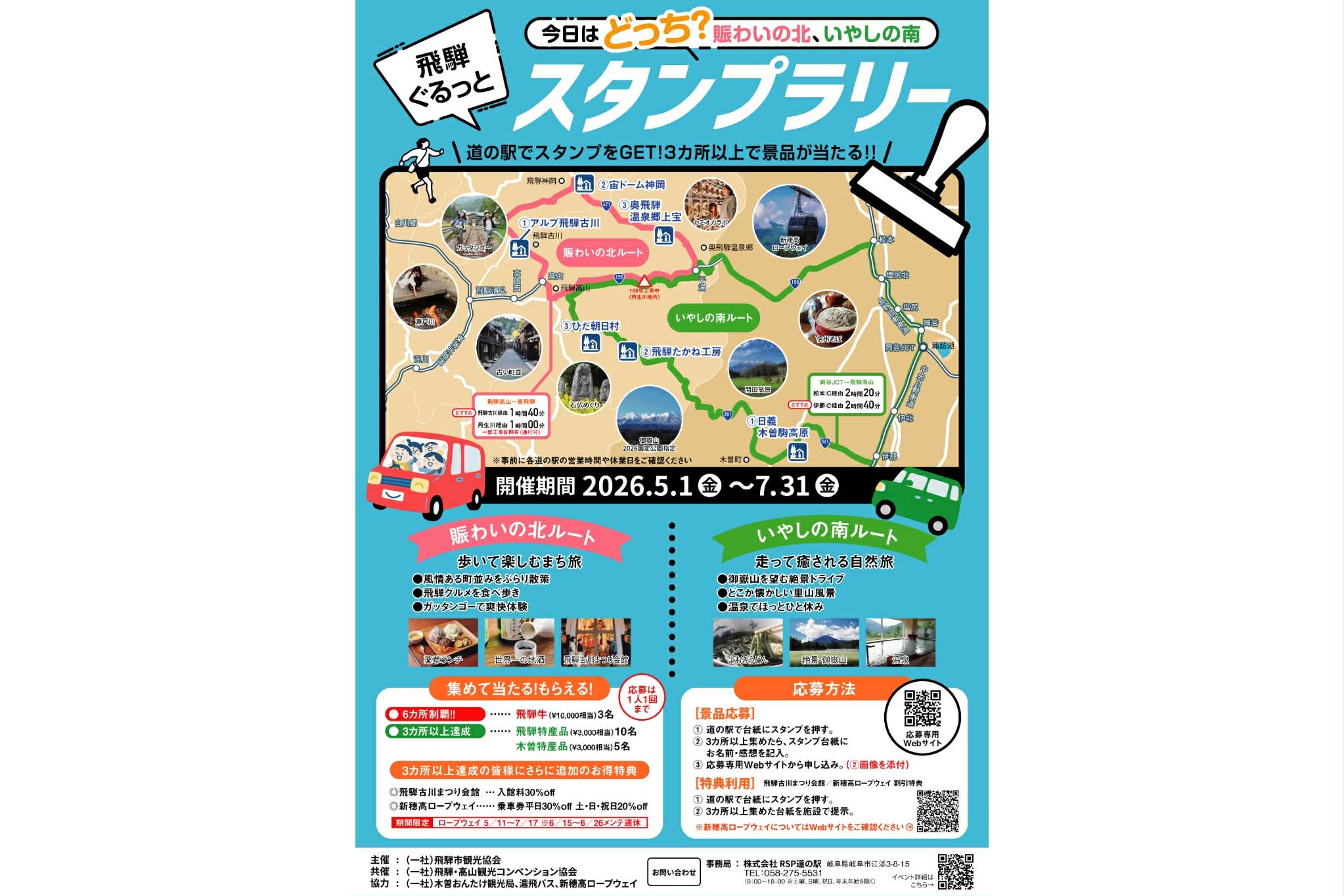 飛騨・高山・木曽エリアを巡る「飛騨ぐるっとスタンプラリー」が開催されます。北の賑わいと南のいやし、異なる魅力を体感できる2つのルートを通じて、地域の多彩な魅力を再発見できます。道の駅を巡りながらスタンプを集め、ドライブや観光とあわせて気軽に参加できるのも魅力。最短ではなく、寄り道しながらゆったりとした旅を楽しんでみませんか。
