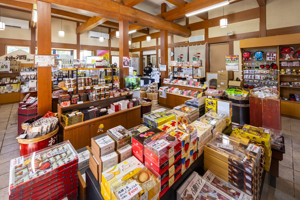 お土産コーナーには、飛騨の特産品のほかに東京大学宇宙線研究所関連の商品も。ここならではのお土産を購入することができます。軽食コーナーで味わえる飛騨神岡名物「てんぷらまんじゅう」も人気です。