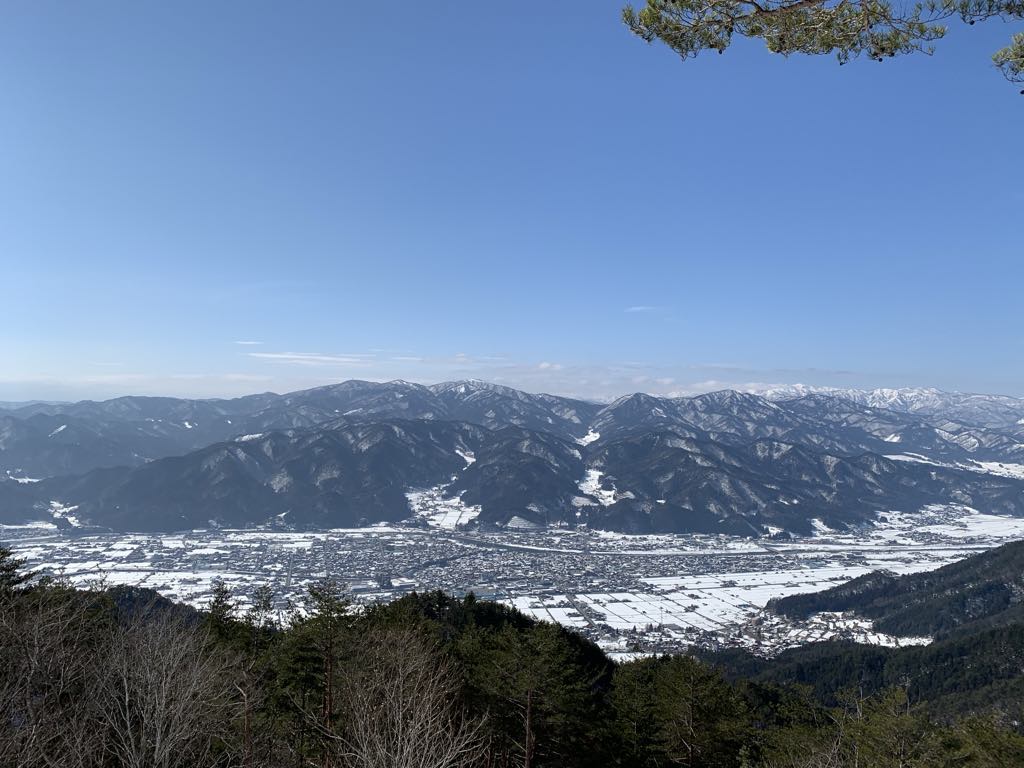 登山口から山頂まで片道1時間30分、気軽に冬山を満喫できます。山頂展望台からは飛騨古川の町や北アルプスを一望。普段とは異なる雪に覆われた景色が目の前に広がります。