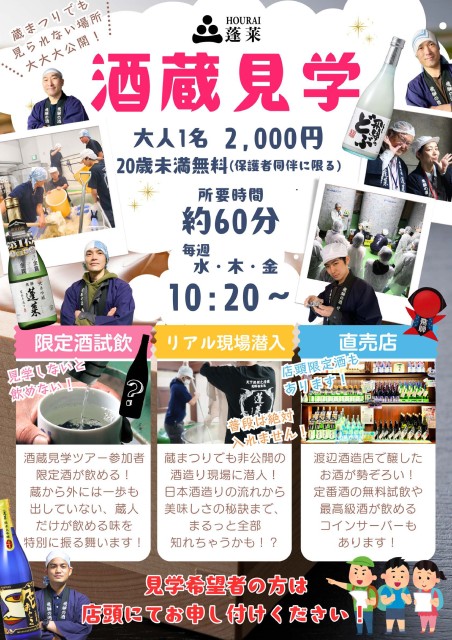見学はお一人様2,000円、所要時間は約1時間。さらに、見学参加者だけが味わえる“完全非売品の高級酒”も頂けます。