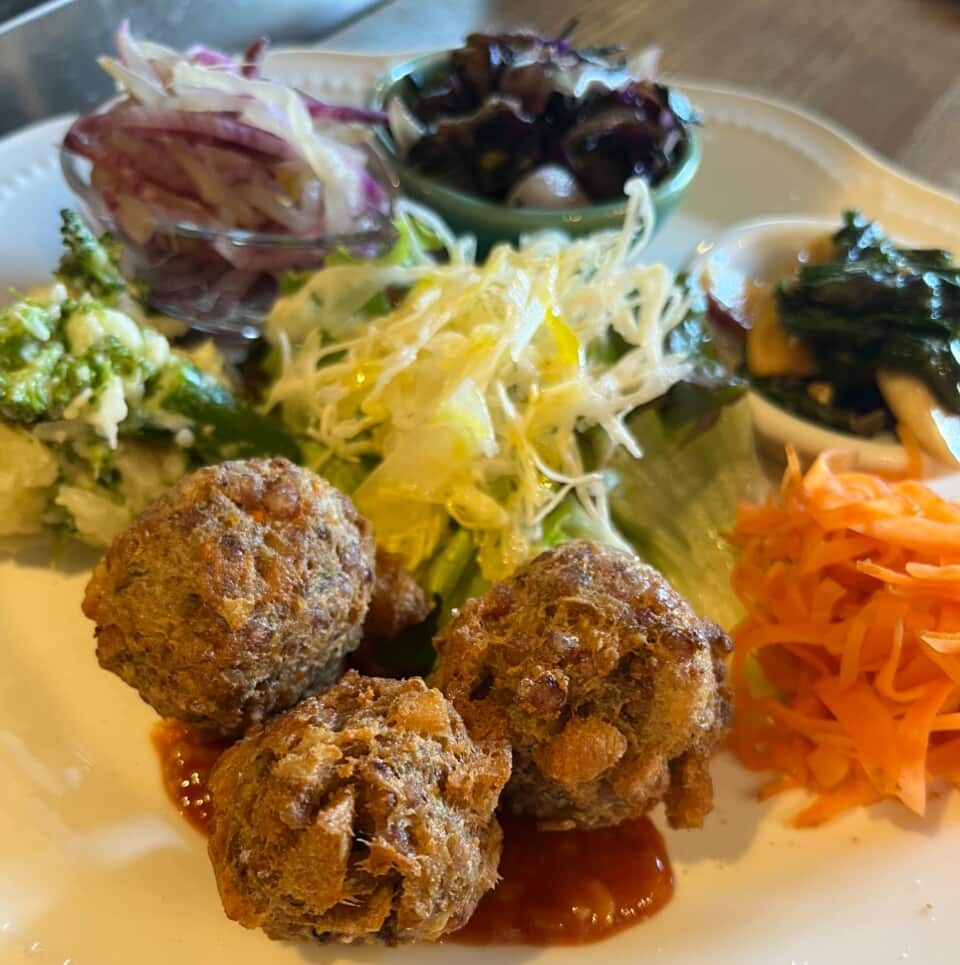 お昼ごはんは民家を改装した【野草やど旬菜おてあて】にて、酵素玄米ごはんと季節の食材を使ったお料理、そして野草・薬草の天ぷらをいただきます。