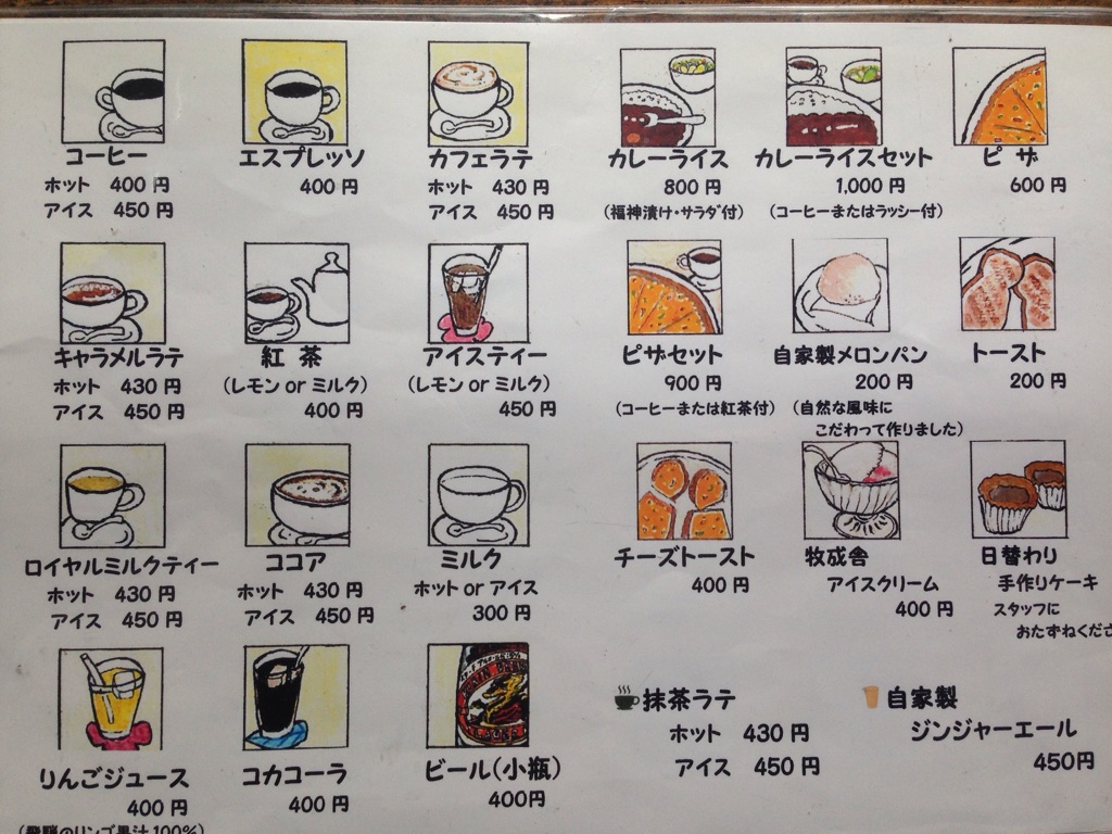 | 料金 | コーヒー 430円 カレーライス 800円 メロンパン 220円 2023.4.1現在 |