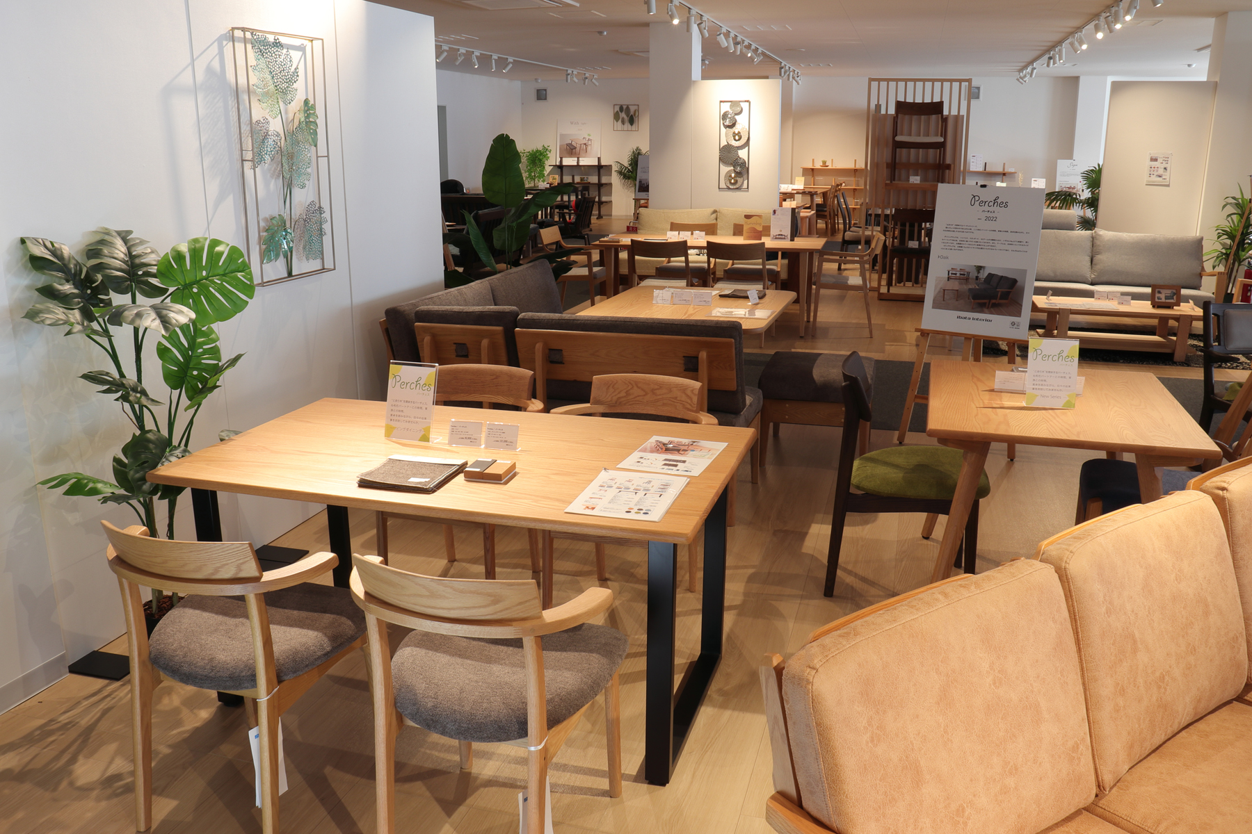 家具を直接見て、触れて選べるゆったりした店内です。
