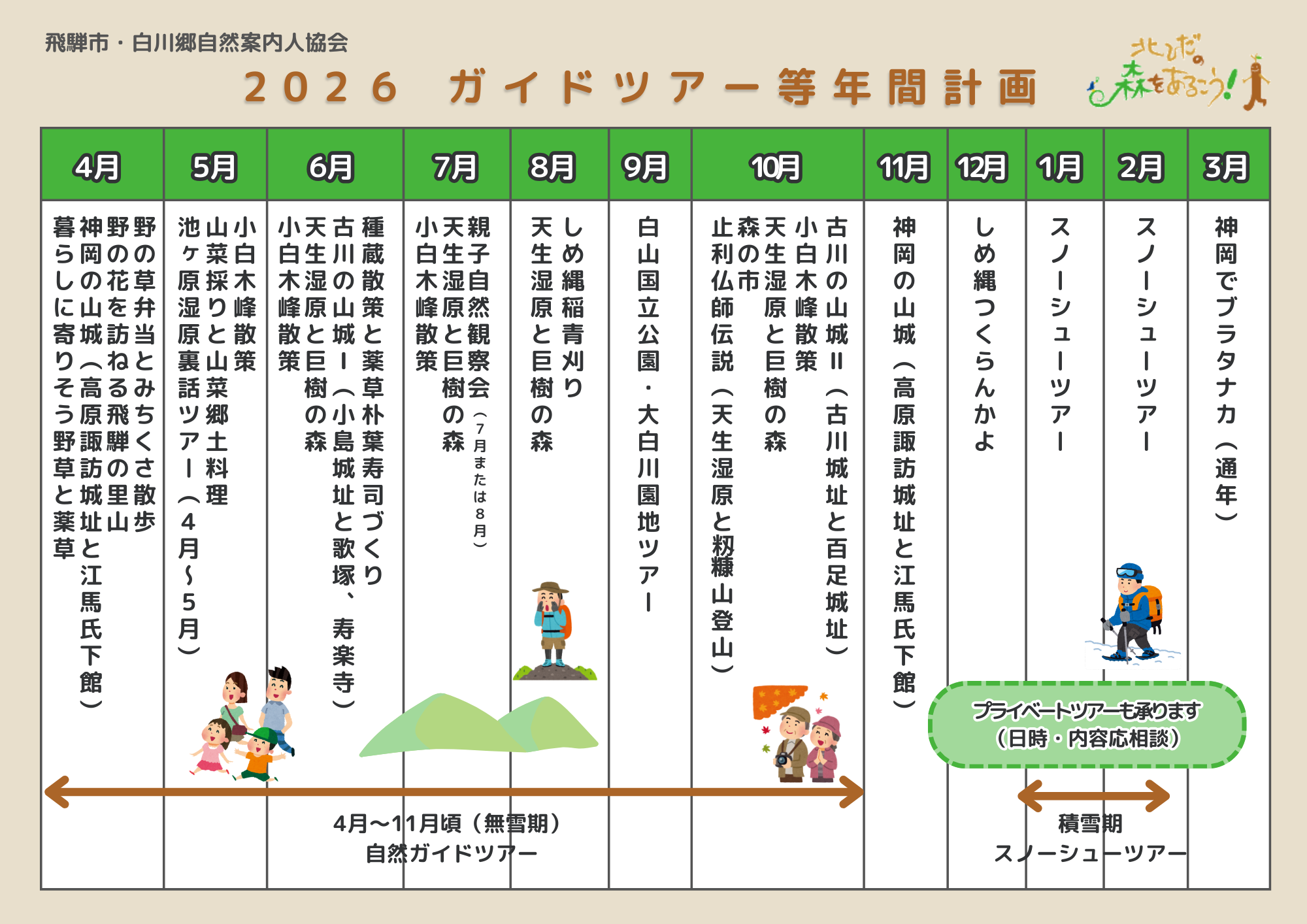 北飛騨の森を歩こう(一般社団法人 飛騨市観光協会/NPO法人 飛騨市・白川郷自然案内人協会サイト)